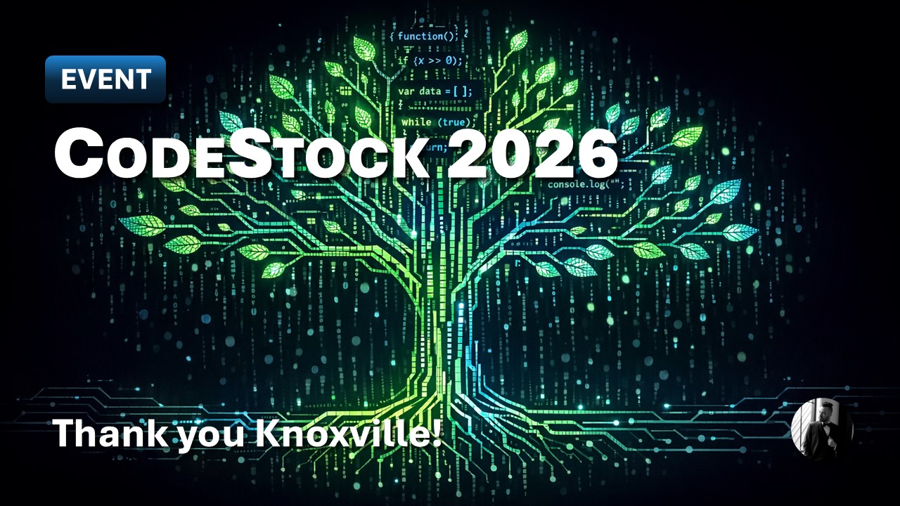 Welcome back and thank you to the greater Tennessee developer community for an exceptional CodeStock 2026! I've returned home after two-days attending and speaking at CodeStock, and it was a joy to experience. I've heard a lot from fellow speakers of CodeStock from the past, and its presence these last two days has lived up to expectations. The consensus I heard was "CodeStock is back". The energy was there, the attendees were there, the community was there. I met so many new friends in this second visit to Tennessee.